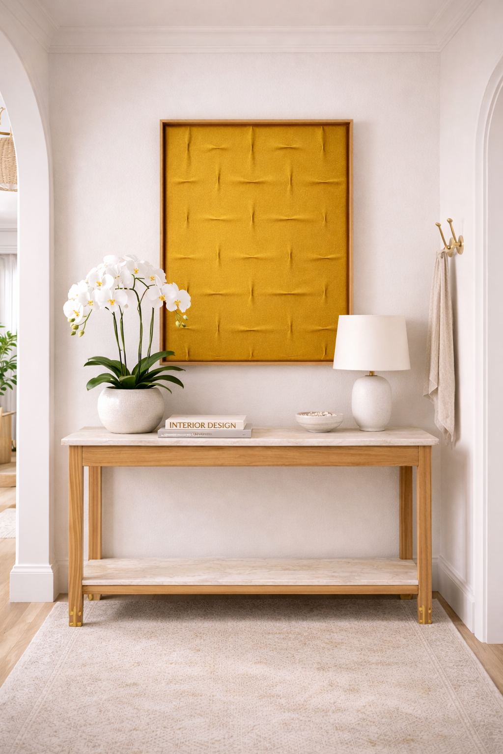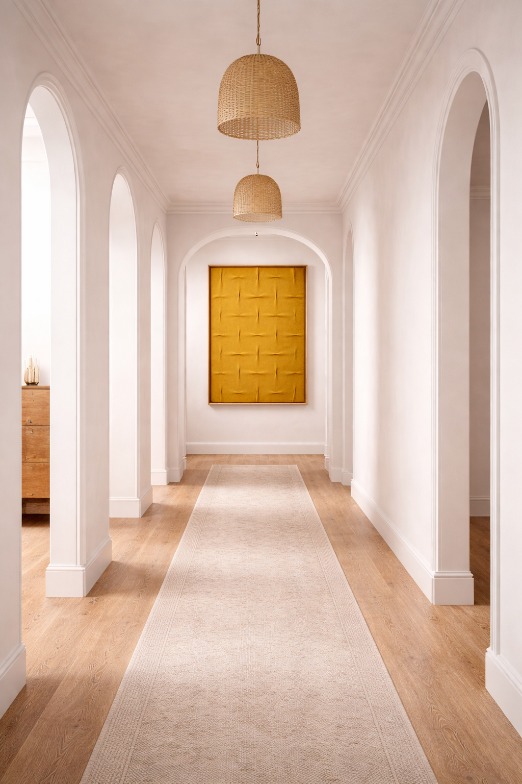 Su geometría acolchada y suave crea una sensación de refugio — una estructura delicada que recoge, protege y sostiene el espacio con intención.