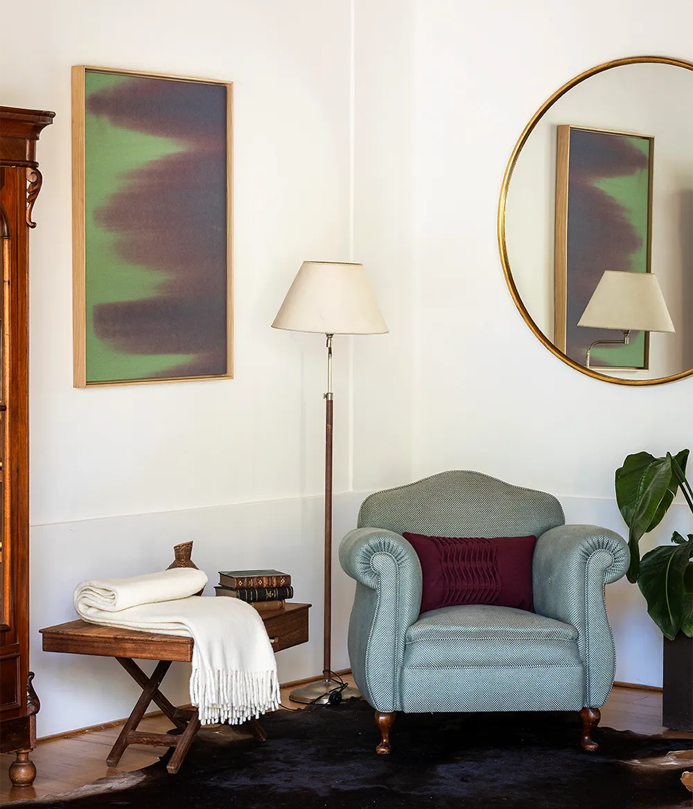 Crafted in 100% wool and hand-painted, each variation of color and texture is unique, making this piece a singular original within the SOMNIA collection.