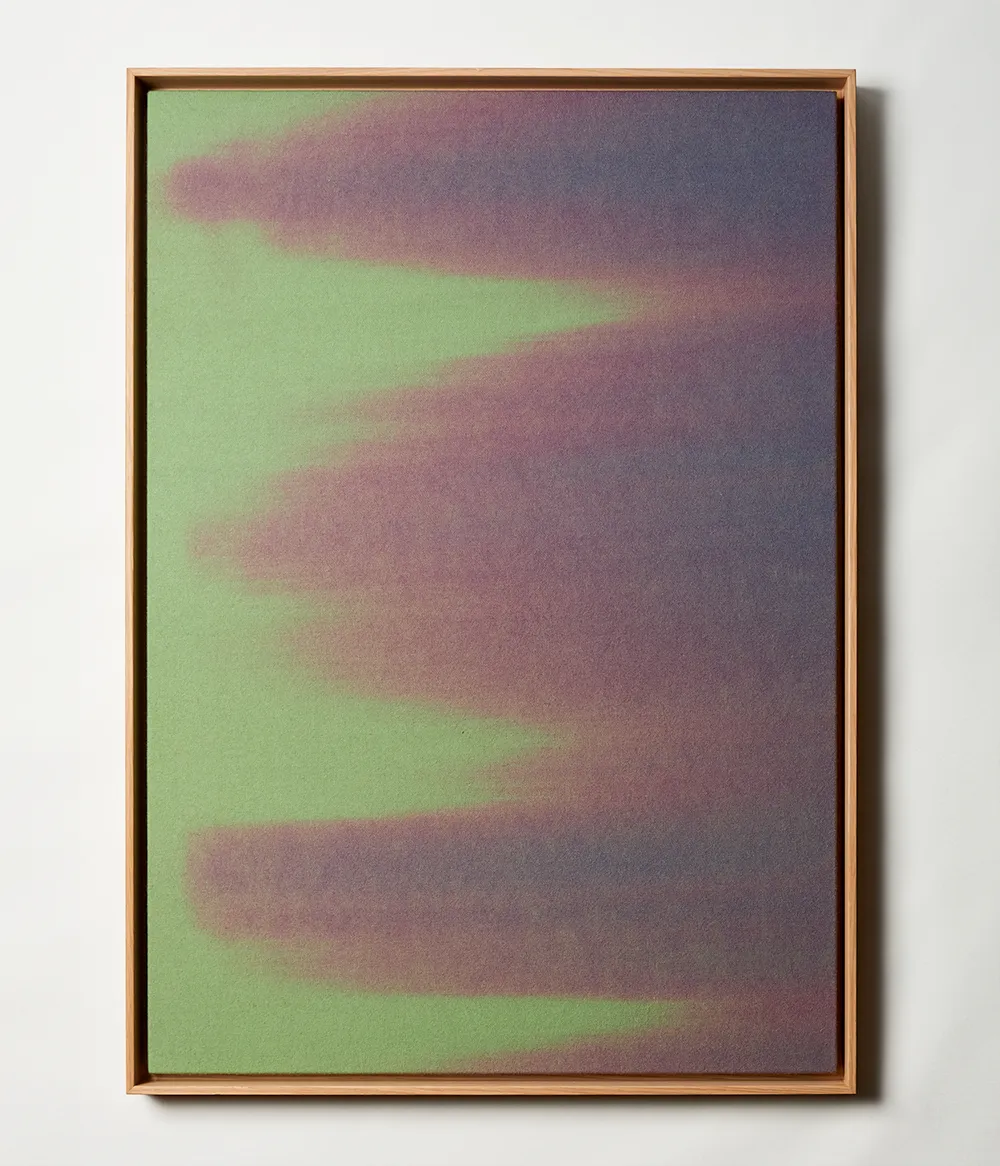 Soft violets and deep greens blend into a calm, balanced landscape — the kind of internal stillness that arrives when the mind finally exhales.