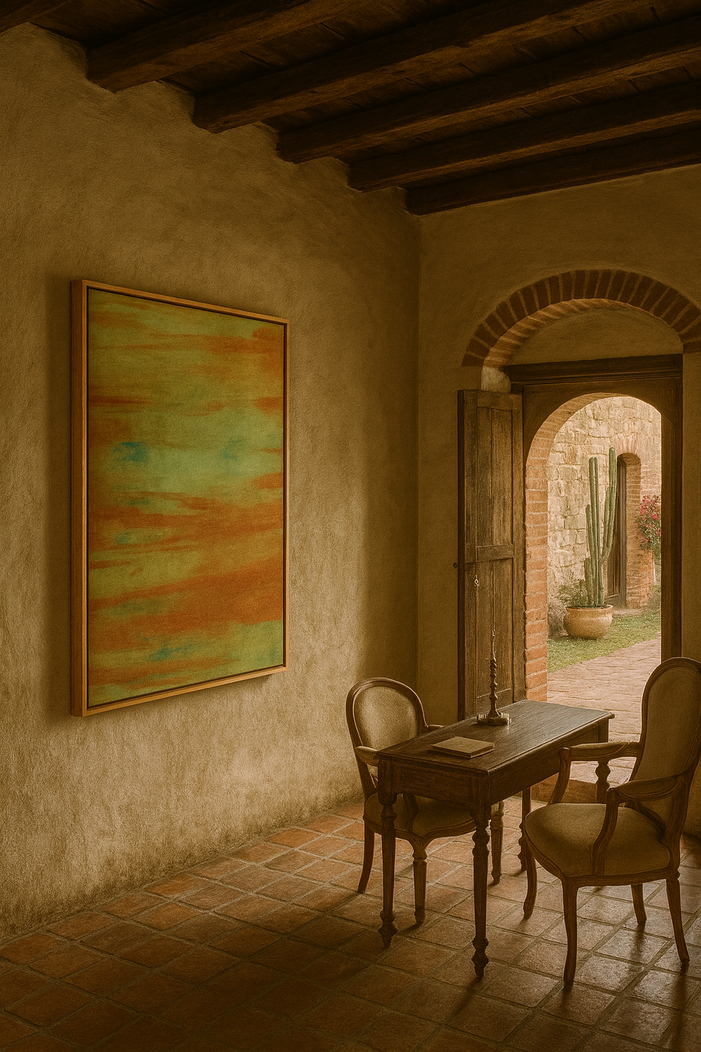 A grounded abstraction that holds space without ever overpowering it.